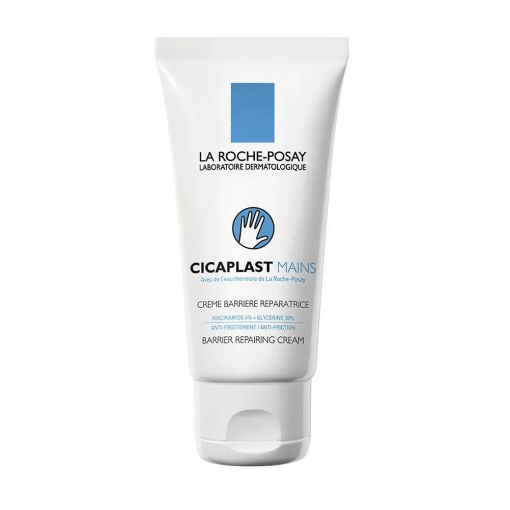 Cicaplast Manos de La Roche-Posay es un tratamiento regenador para manos dañadas, resecas, agrietadas, ezcemas o dermatitis irritativas. Sus beneficios son: 1) Repara, calma y restaura la barrera de la piel. 2) Efecto guante, textura no pegajosa. 3) Tolerancia testeada en pieles sensibles y atópicas. 4) Sin parabenos, sin fragancias. Cicaplast Manos contiene Agua Termal de La Roche-Posay, Glicerina (humecta), Niacinamida (Calma). Tipo de piel: Manos secas, agrietadas, irritadas, sensibles. Zona de aplicación: Manos Composición: Agua Termal de La Roche-Posay, Niacinamida, Glicerina y Manteca de Karité. Calma y restaura la barrera de la piel Forma una película protectora, efecto guante Tolerancia testeada para pieles sensibles y atópicas Consejos de aplicación: Aplicar las veces que sea necesario. Permite retomar la actividad inmediatamente. Resiste varios lavados.
